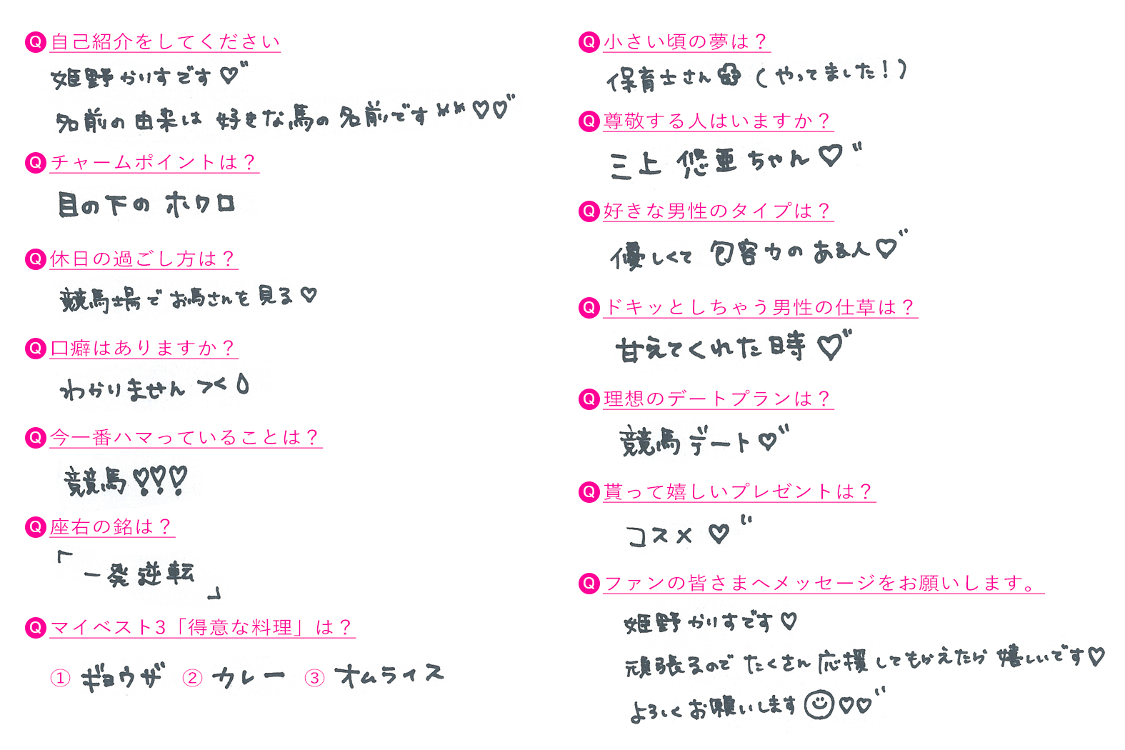 - 趣味/特技 :競馬&アイドル/フードファイト